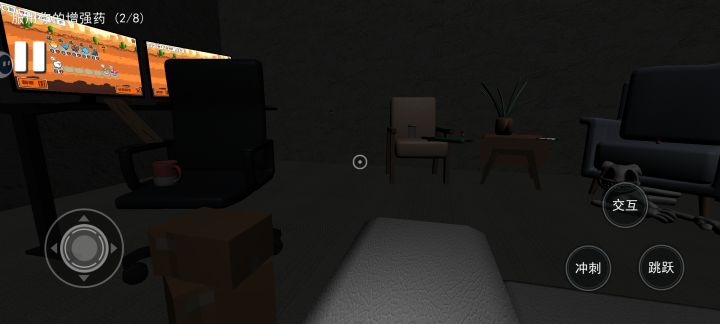 3D动作类单机独立游戏,采用第一人称视角,找到散落在房间内的八个药丸即可通关,不能落到地面上,会被骷髅小狗吃掉。场景小细节很多,带有一定趣味性,恐怖元素只有小狗,掉到地上会被突脸,其他没什么可怕之处。