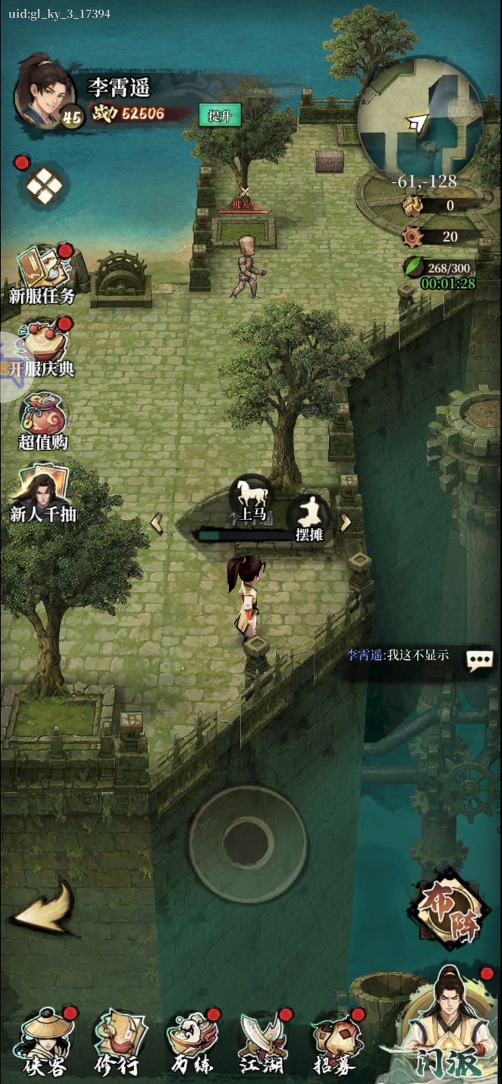 两天通关,略有瑕疵1.剧情部分冗长,互动可选项影响不大,沉浸感不强,建议做适当删节,部分情节可做文言文叙述增加深度,资金足够,希望用AI多配一些人物声音;2.氪金度,前期进阶丹比较缺,0氪微氪慢慢攒还能玩,卡关是正常的,侠客升级及装备加成高,升星收益在于连携级技能伤害升级,一星解锁连携即可,总体氪金度不高,小礼包弹窗多,可以无视或量力而行;3.人物形象上,各自有各自人设但主角仅从对话选项中突