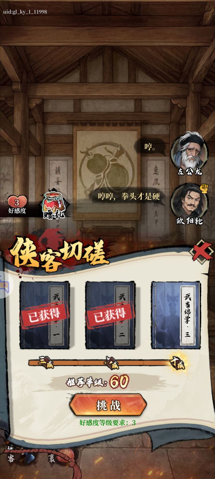 欧阳轮60级点开始挑战之后没反应,不能挑战。