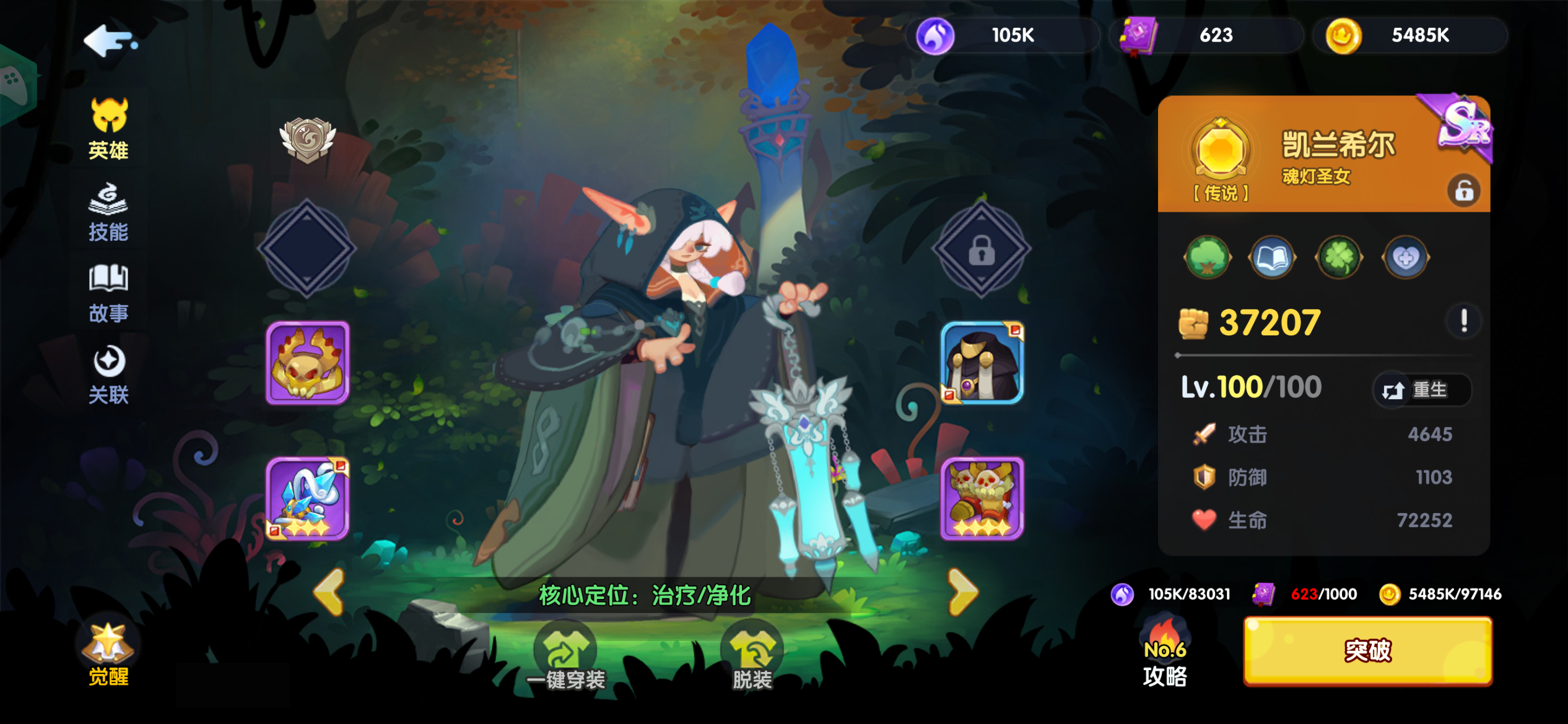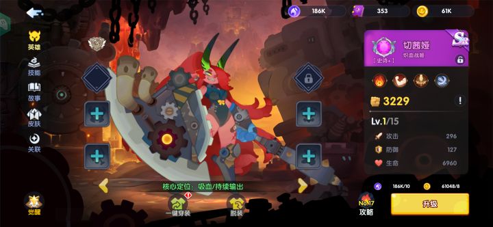 一、核心英雄速览(必记) - 岚佐(火刀):前期开荒神卡,大招AOE+回血,配合聚怪可1v5,四保一阵容首选 。- 花木兰(光暗):主线3-24赠送,后期转型核心,爆发、吸血、护盾拉满 。- 水网(萨伦):聚怪工具人,让火刀/木兰输出最大化,低练度可用 。- 狮子/章鱼:狮子濒死5秒无敌抗伤,章鱼嘲讽降攻,性价比坦 。- 花精/风奶/猫:花精眩晕控场,风奶抬血,猫死了仍能全体加攻速 。