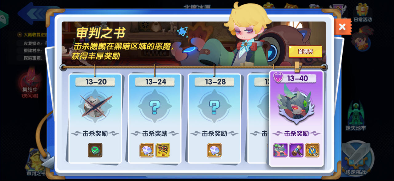 !论坛活动来了!! 作为卡牌游戏,怎么能少得了推图呢!?而击败的所有首领头目都被一一记录于审判之书(出征页面左下角喔)中,这不仅是一本花名册;更是大家实力的证明!快来论坛展示你的进度,翻开这一页让大家都看看你的进度到哪里了?【参与方式】:在论坛板块秀出你的审判之书, 记得截图找客服曼曼领取对应礼包喔~【发帖举例】:起步阶段,还需努力【礼包内容】: 钻石*328、史诗英雄碎片*30
