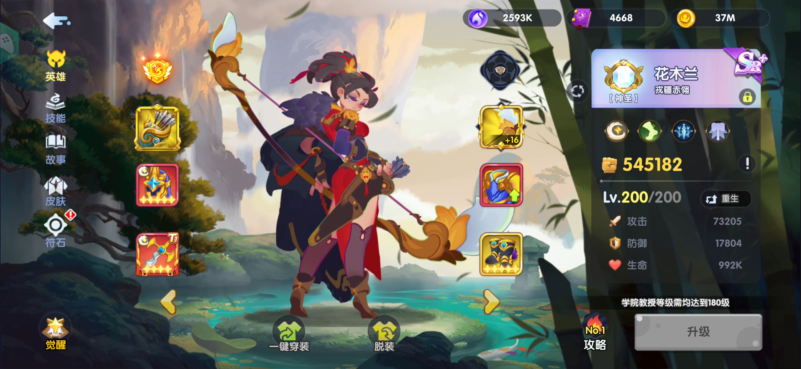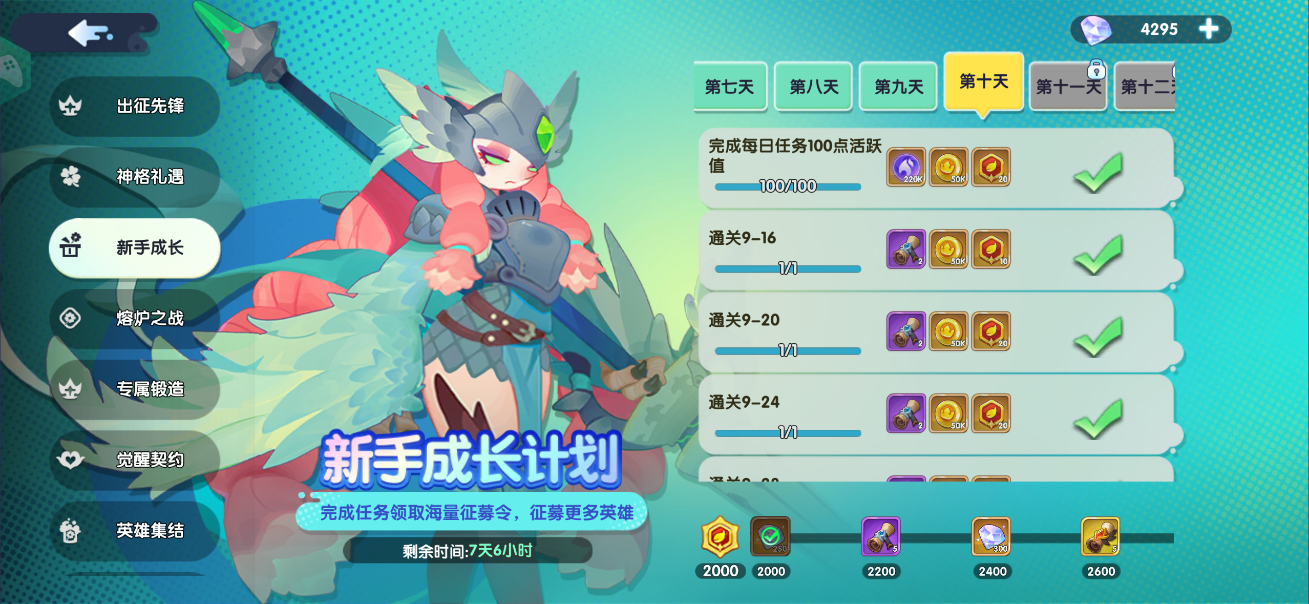 很多人都写了一些简单攻略.我来写下自己的细节攻略.第一天把兑换码用光.有200抽左右.然后钻石留着别用.等15-40关开启祈愿以后去抽.这样可以稳定获得1-2个花木兰.新手足够在十天内拿下红甚至红加.每天20抽的花木兰抽卡.建议最后一次不用抽.因为我发现全部算下来一共有199抽.抽一抽.可以选择充预算拿下.要不然就选泽抽150次.拿下三个花木兰.加上龙穴商店60000换一个.12天之内可以换2个