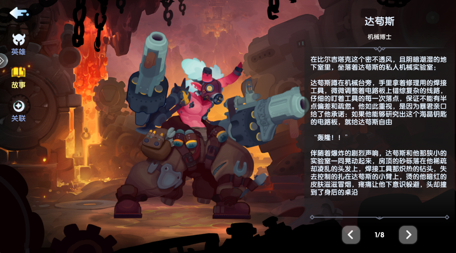 【英雄速览】:机械博士-达苟斯 英雄定位:持续输出 火系的一张R卡,手持双枪,脸上戴个防毒面罩,普攻就是他的所有!必杀技能够大幅提升自己的攻击速度,同时提高自己的普攻伤害。由于每四次普攻会发射额外的子弹,攻速将是其最重要的属性需求之一【必杀技】:无休炮火实战效果简单展示