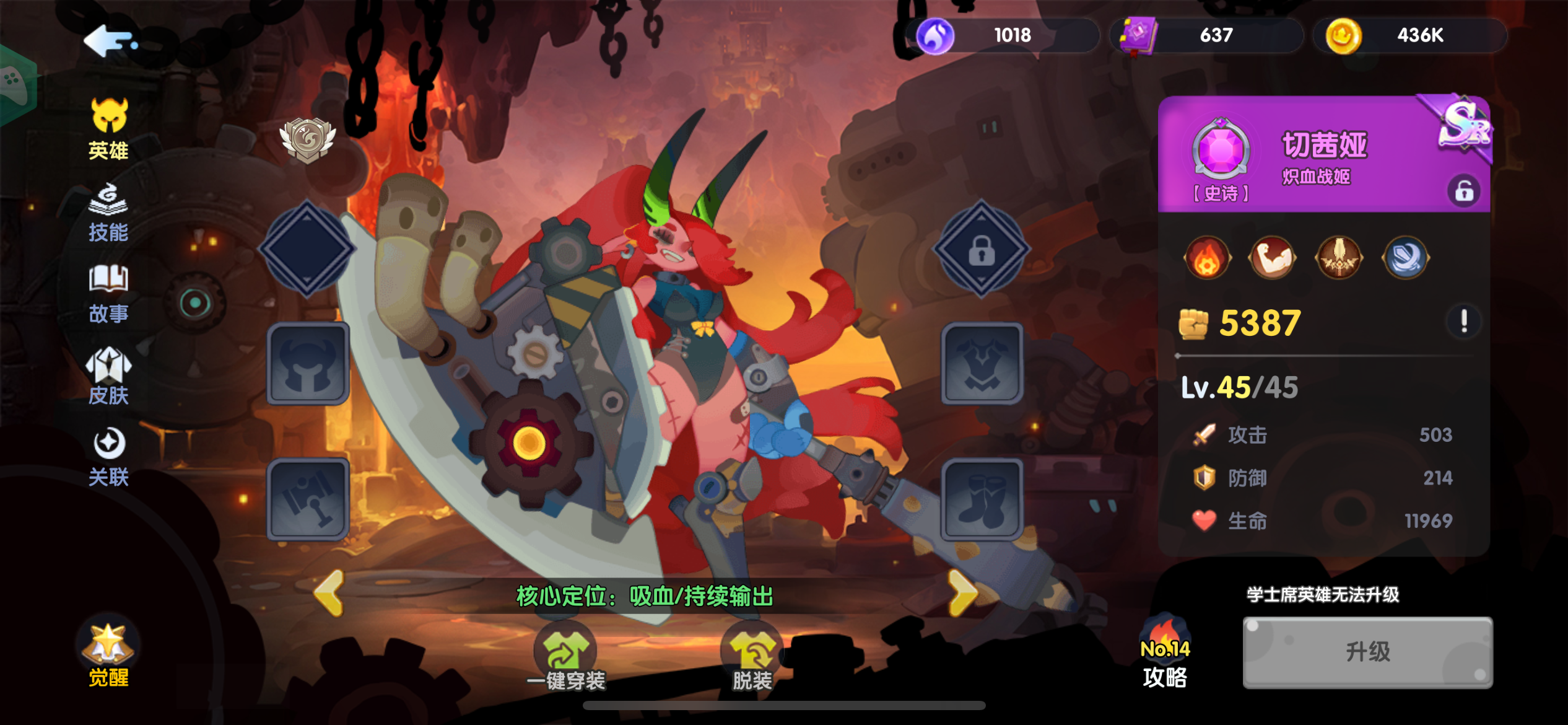 一、核心英雄速览(必记) - 岚佐(火刀):前期开荒神卡,大招AOE+回血,配合聚怪可1v5,四保一阵容首选 。- 花木兰(光暗):主线3-24赠送,后期转型核心,爆发、吸血、护盾拉满 。- 水网(萨伦):聚怪工具人,让火刀/木兰输出最大化,低练度可用 。- 狮子/章鱼:狮子濒死5秒无敌抗伤,章鱼嘲讽降攻,性价比坦 。- 花精/风奶/猫:花精眩晕控场,风奶抬血,猫死了仍能全体加攻速 。