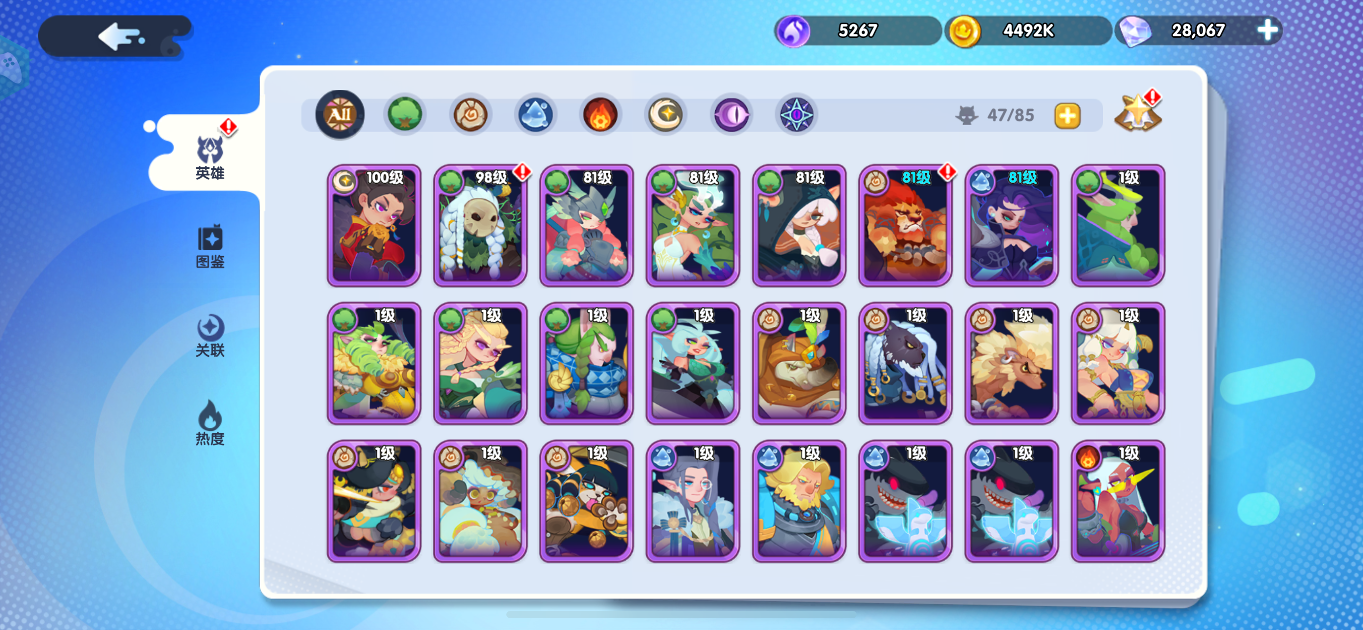 一、核心英雄速览(必记) - 岚佐(火刀):前期开荒神卡,大招AOE+回血,配合聚怪可1v5,四保一阵容首选 。- 花木兰(光暗):主线3-24赠送,后期转型核心,爆发、吸血、护盾拉满 。- 水网(萨伦):聚怪工具人,让火刀/木兰输出最大化,低练度可用 。- 狮子/章鱼:狮子濒死5秒无敌抗伤,章鱼嘲讽降攻,性价比坦 。- 花精/风奶/猫:花精眩晕控场,风奶抬血,猫死了仍能全体加攻速 。