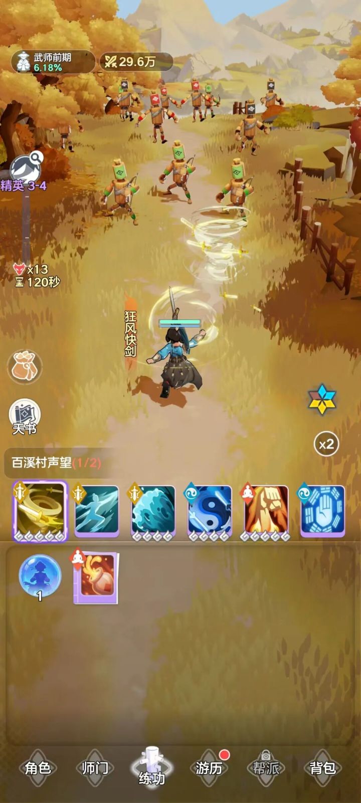首先是游戏特色,主要就是武学合成以及相关搭配。目前来看的话,游戏中有四个流派。后期的话还会增加新的流派,并且也是以这个为卖点。但是金红武学合成概率比较低,后期应该会进行改动。