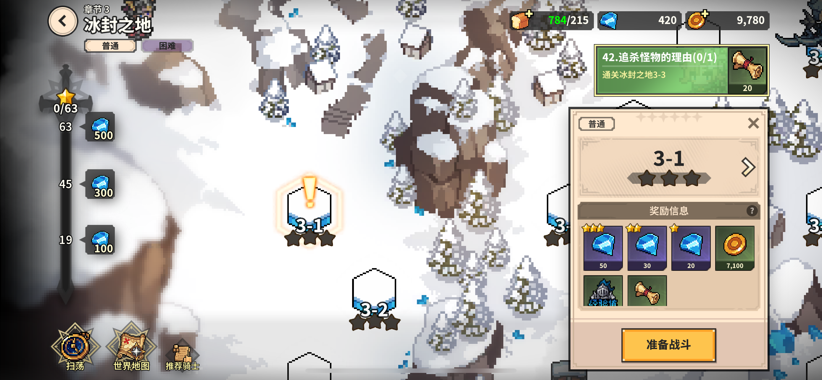 ▌登上这个叫什么名字来着的大陆,您需要记住以下这些:领地城墙战利品可获得丰富养成资源,注意及时更新城墙作战阵容,以保证高效战利品收益。骑士团城堡升阶将提高阵容人数上限,大幅提升战力,记得参加光之试炼,优先升级城堡哦。骑士经验达到上限,将无法通过训练所获取经验,领取前记得确认骑士是否达到经验上限。面包店、金矿、宝石采矿场、符文矿山的资源产出均有最高上限,记得上线领取哦!在扫荡普通难度下的精