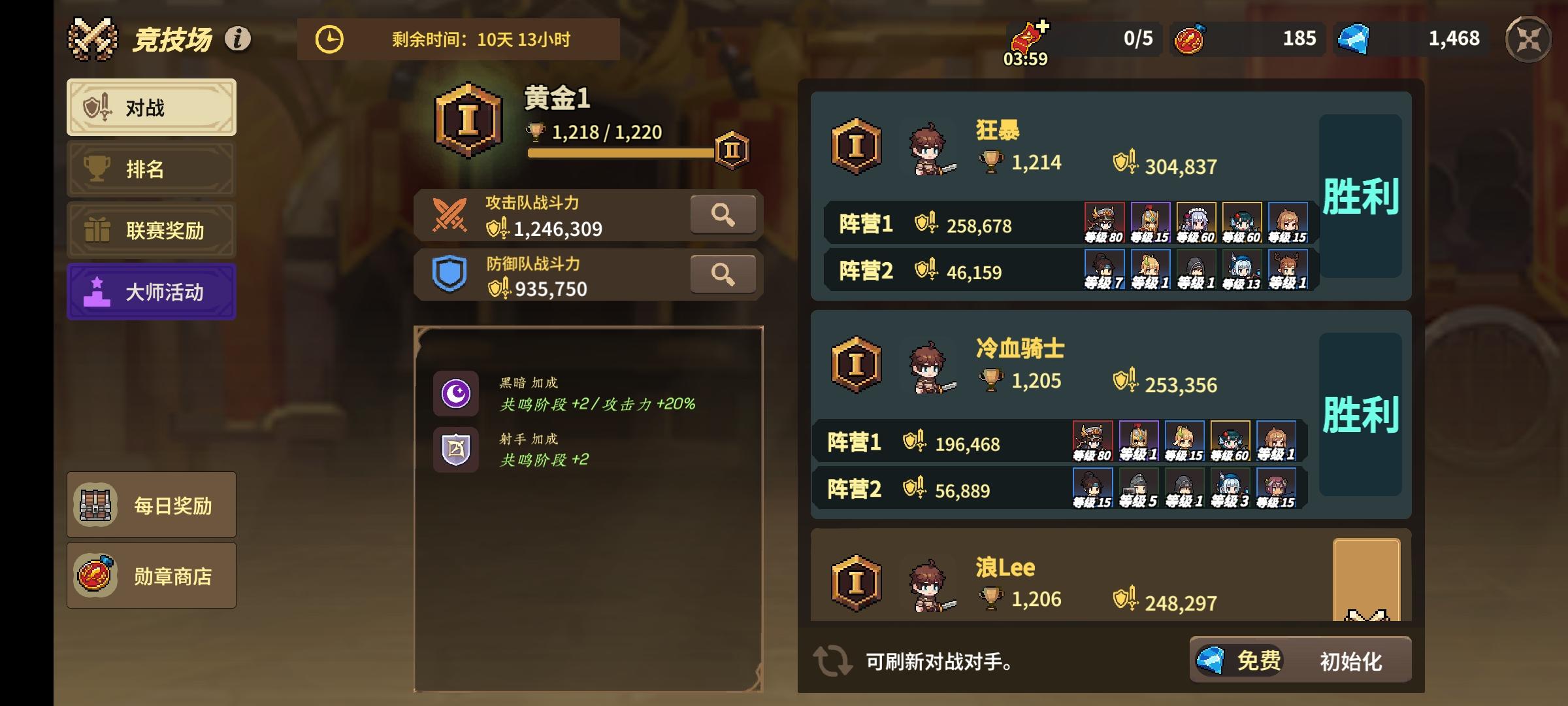 竞技场防守失败的惩罚降低一些吧,上午打上去,下午就回来了,或者直接给个每天最多被打几次