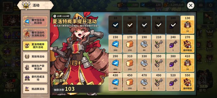 ▌萝丝&帕尼寇斯 召唤概率提升✦ 召唤时间 ✦1月26日 8:00~2月16日 8:00✦ 召唤说明 ✦活动期间,传说骑士【萝丝】及其专属武器【帕尼寇斯】的召唤概率将获得大幅提升!※【萝丝召唤概率提升】与【骑士召唤】的保底次数共享,每90次召唤可领取随机传说品阶骑士召唤券一枚。通过召唤获得传说骑士时,保底次数不清空。※【帕尼寇斯召唤概率提升】与【武器召唤】的保底次数共享,每90次召唤可