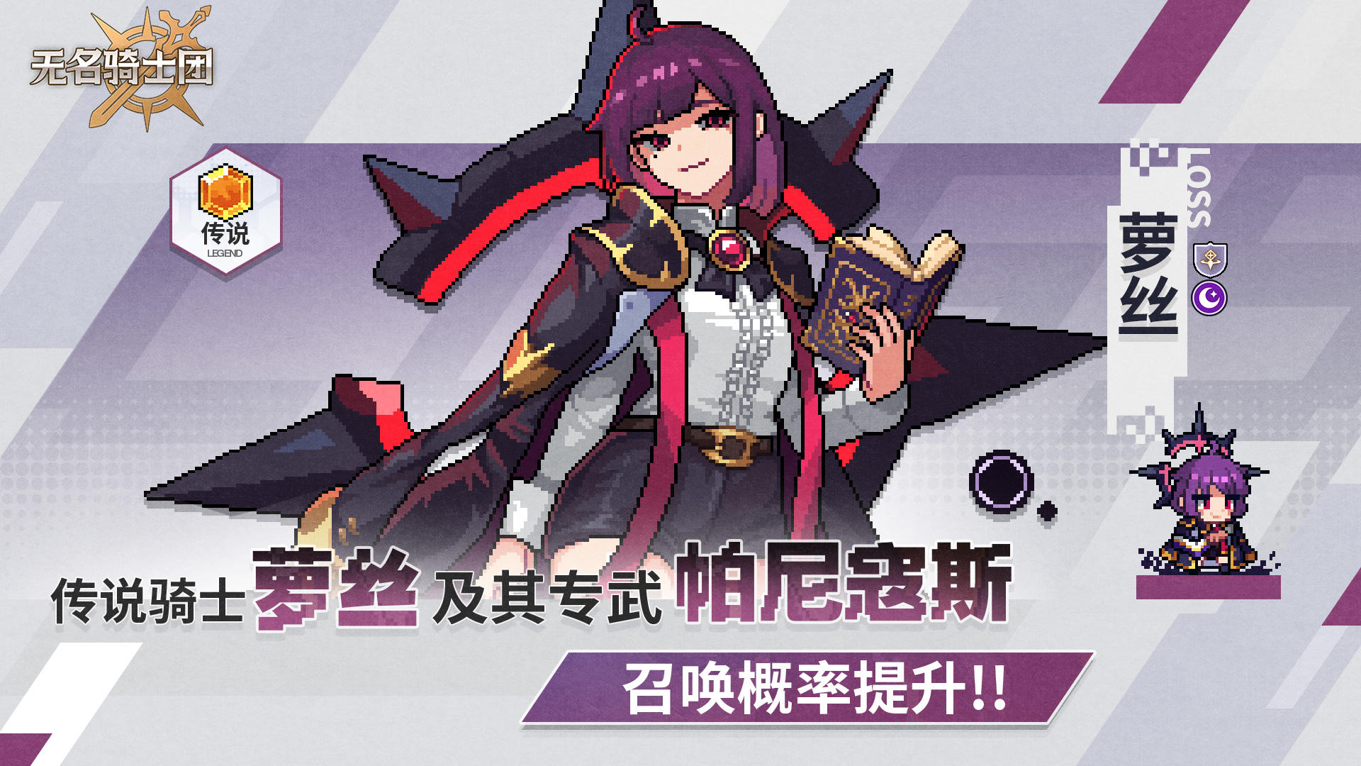 ▌萝丝&帕尼寇斯 召唤概率提升✦ 召唤时间 ✦1月26日 8:00~2月16日 8:00✦ 召唤说明 ✦活动期间,传说骑士【萝丝】及其专属武器【帕尼寇斯】的召唤概率将获得大幅提升!※【萝丝召唤概率提升】与【骑士召唤】的保底次数共享,每90次召唤可领取随机传说品阶骑士召唤券一枚。通过召唤获得传说骑士时,保底次数不清空。※【帕尼寇斯召唤概率提升】与【武器召唤】的保底次数共享,每90次召唤可