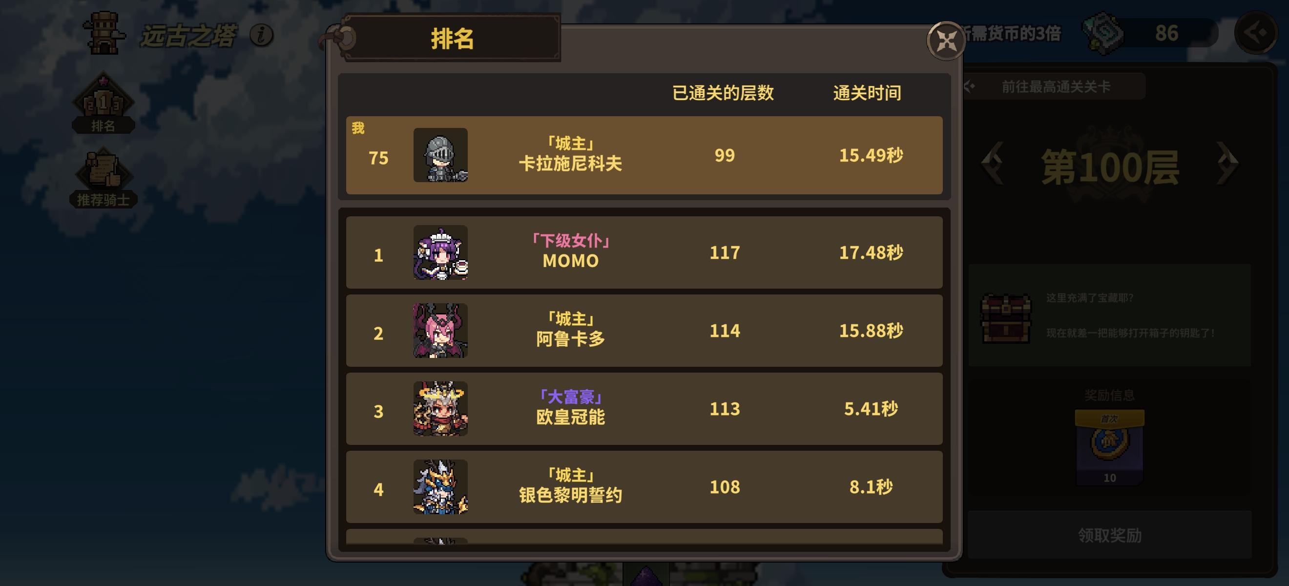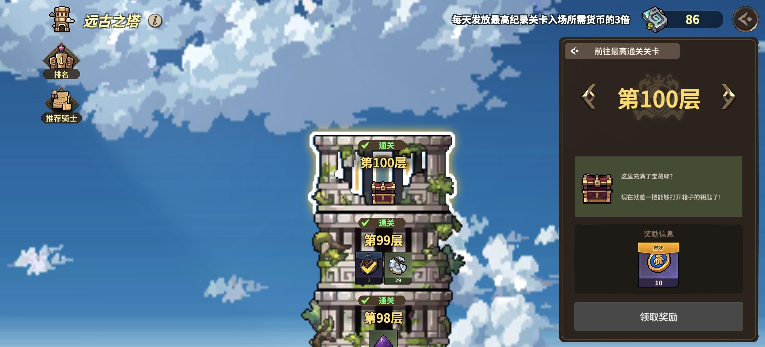这个远古塔为什么不能突破100层了?排行榜上好多人都突破了。难道说也是要花钱才能解锁的么?