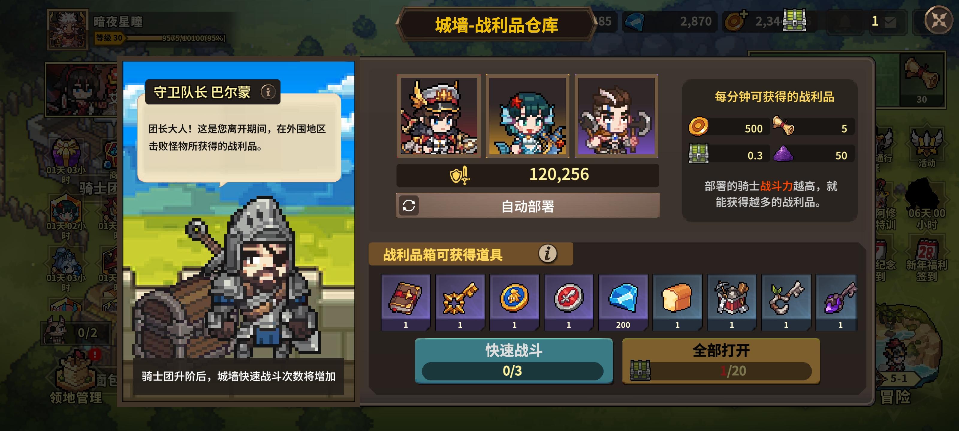 主练阿修罗加武器 输出相当暴力 加上一个法师推图无压力 升级进阶材料去刷城墙箱子 进阶很快的