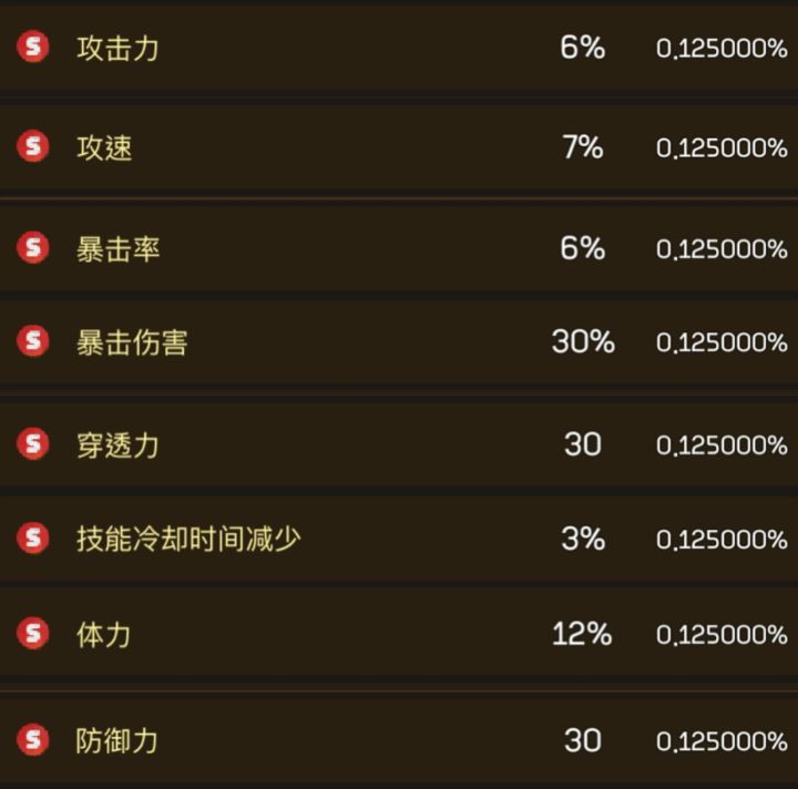 无名骑士团一共有八大属性:分别是体力、防御力、攻击力、攻速、暴击率、暴伤、穿透力、减CD。对比符文和武器的各项属性,具体选什么才是最优?!对比各个符文的数值1、攻击力:基础:8.5%,升级:+1%满级:17.5%,提升比例:+105.88%满级全套属性:+105%攻击力2、攻速:基础:5%,升级:+0.2%满级:6.8%,提升比例:+36.00%满级全套属性:+40.8%攻速3