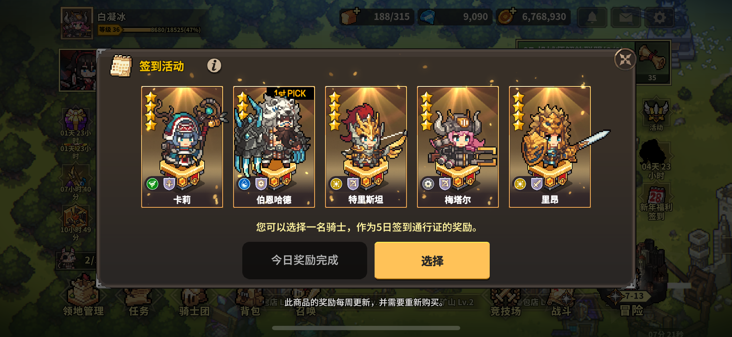 签到是一周一次还是?那我现在是不是可以随便选一个?因为这周快完了。符文是扫荡那个精英本还是?