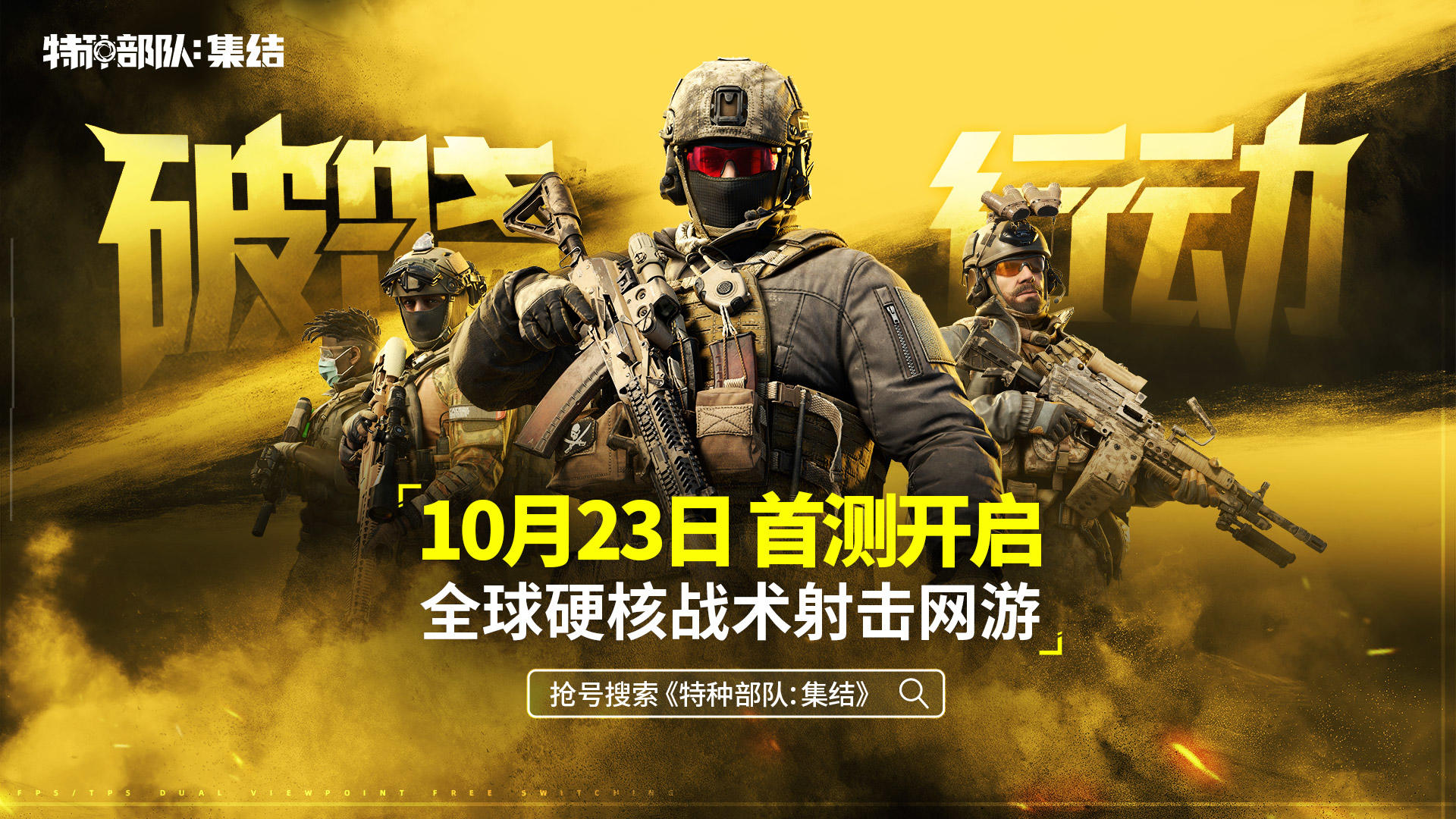 全球硬核战术射击网游《特种部队:集结》国服首测正式定档10月23日 可前往官网以及各游戏平台领取测试资格 关注《特种部队:集结》官方账号,第一时间获取测试最新情报 祝各位游戏愉快,我们战场上见! -------------- 《特种部队:集结》是一款以真实 “特种部队” 和 “团队协作” 为核心的硬核战术射击网游。20支精英特种部队,80名特种兵。无论PVE反恐行动、还是PVP特战对决,让你在紧张