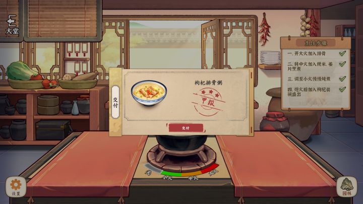 ⑤开放人物好感度,好感度特殊事件,人物形象更换(小虎他娘和小师妹现阶段居然一个形象😅),人物的不同技能。目前店不是自己的,但也可以把主线慢慢进度到自己经营,加入更多模拟经营元素,毕竟食谱终有尽头,越后面食谱的获得应该越难,总不能每天一直重复的做饭。