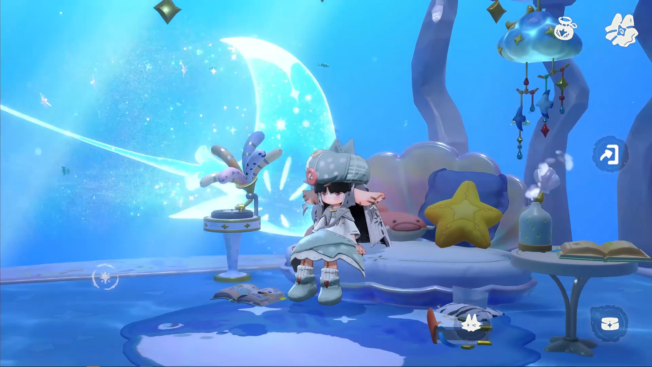 首先这画面也太戳我了吧!绘本风的童话世界,不管是蘑菇屋还是星空海,随便截一帧都是壁纸级别的,那种软乎乎的手工质感,看一眼烦躁都没了。而且视角是微缩小人偶那种,逛地图的时候就像在玩精致的童话手办,细节真的拉满。