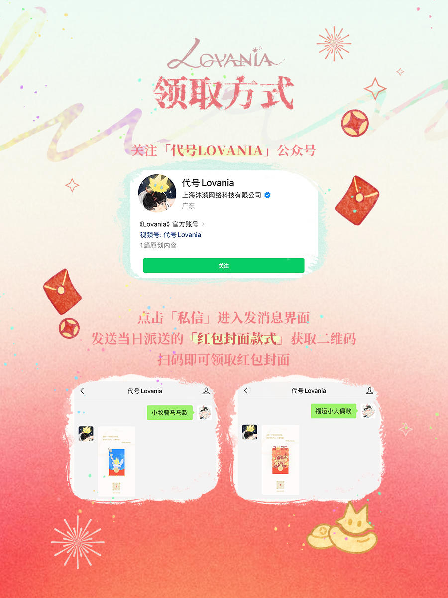 🧨小人偶恭贺新禧,小牧策“马”扬鞭—— 马年新春将至,为小人偶准备的红包封面也马上出炉啦~ ✨我们将在1月30日-2月4日免费放送「小牧骑马马款」、「福运小人偶款」两款红包封面~ 🎇祝愿小人偶在新的一年里,马到福来,岁岁常安! ››详细领取方式请戳图片了解~ ໑ຼ₀₂₆ ✩ ⋆ ┄ ⋆ ✩ ⋆ ┄ ✧ ໑ຼ₀₂₆ ✧ ┄ ⋆ ✩ ⋆ ┄ ⋆ ✩ ໑ຼ₀₂₆ 🌟与记忆重