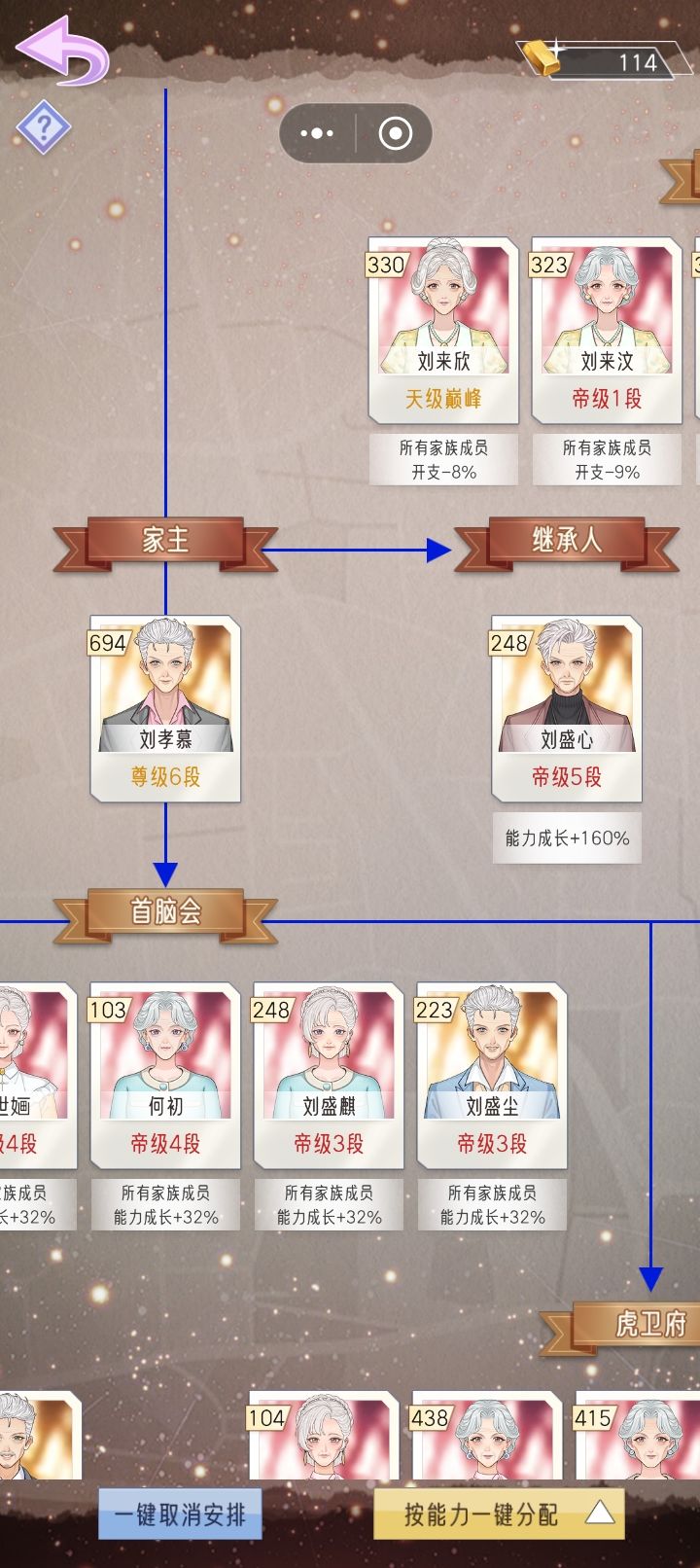 1. 玩了几天,和修仙世家差不多的套路,开局尽可能人少点,能集中资源刷气运。 气运越高,生的孩子气运越高。气运值决定经验速度和赚钱速度。出生气运决定联姻的质量,生娃时候的气运决定孩子资质。想要家族整体潜力快速拉高,头两个孩子只能放弃,前期家主刷气运,50岁以后再生老三老四来传宗接代。第三代开始就不需要卡年龄了,直接生,后面都靠抓周抓到金印+100%气运。2. 颜值,命格,日常身份不强求,后