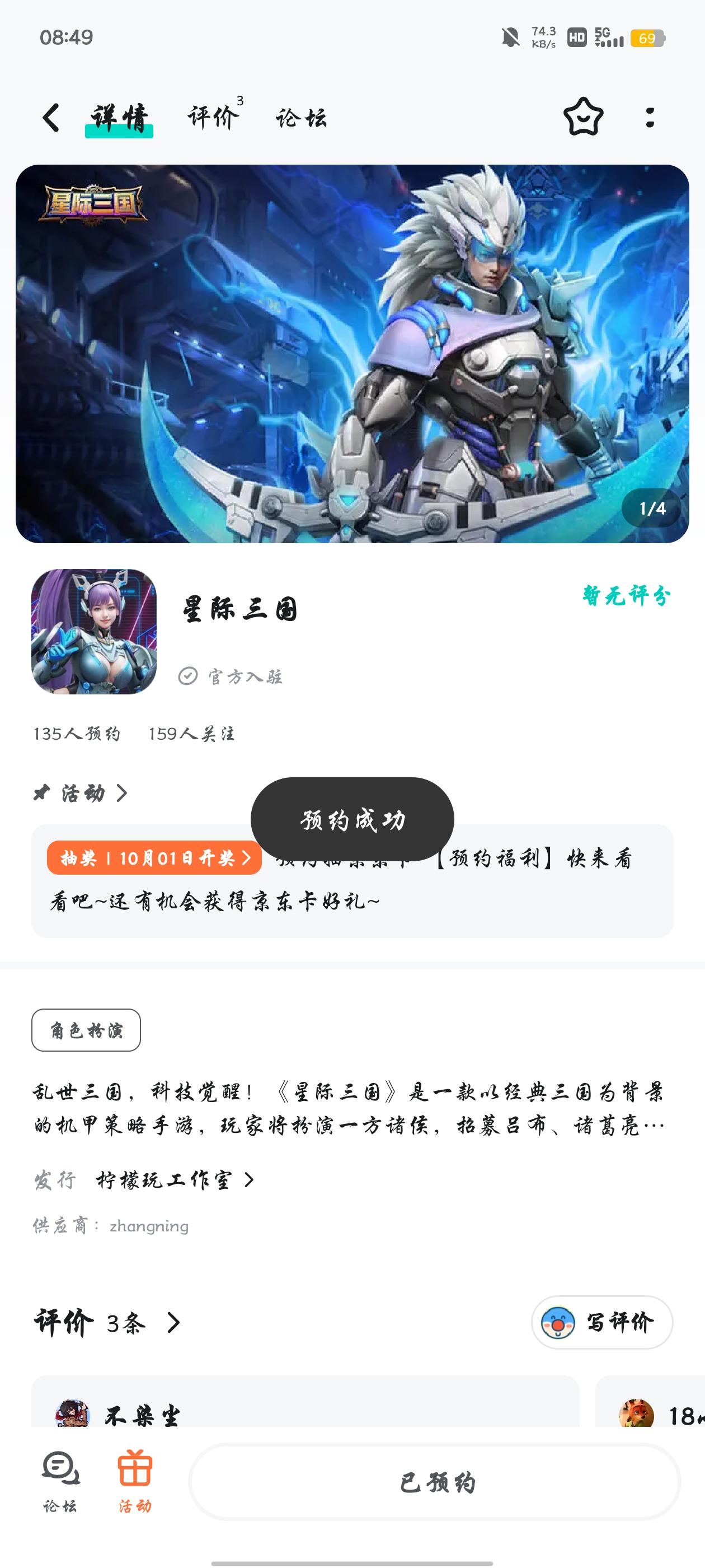 当三国名将披上星际机甲铠甲,当传统兵法碰撞未来科技 ——《星际三国》先锋测试 10 月 3 日正式上线!在这里,你将以诸侯之姿,统领钢铁军团纵横银河,用策略与武力改写三国乱世格局!🔥开测时间:2025 年 10 月 3 日 10:00为了感谢大家的耐心等待,我们特别准备了京东卡抽奖活动。只需轻松参与,就有机会赢得100元京东卡好礼,千万不要错过!【京东卡抽奖活动】▶ 参与方式1.点击关注
