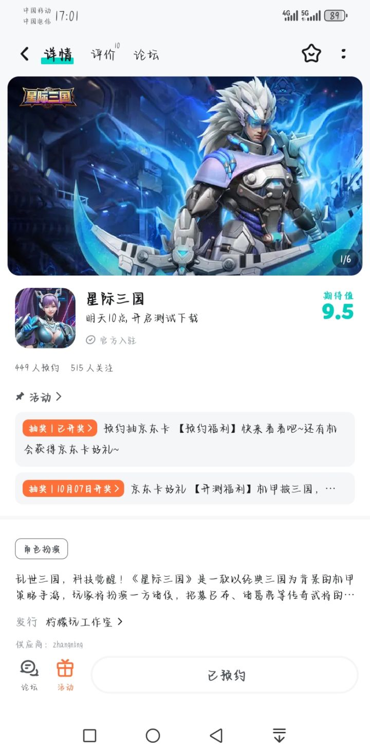 当三国名将披上星际机甲铠甲,当传统兵法碰撞未来科技 ——《星际三国》先锋测试 10 月 3 日正式上线!在这里,你将以诸侯之姿,统领钢铁军团纵横银河,用策略与武力改写三国乱世格局!🔥开测时间:2025 年 10 月 3 日 10:00为了感谢大家的耐心等待,我们特别准备了京东卡抽奖活动。只需轻松参与,就有机会赢得100元京东卡好礼,千万不要错过!【京东卡抽奖活动】▶ 参与方式1.点击关注