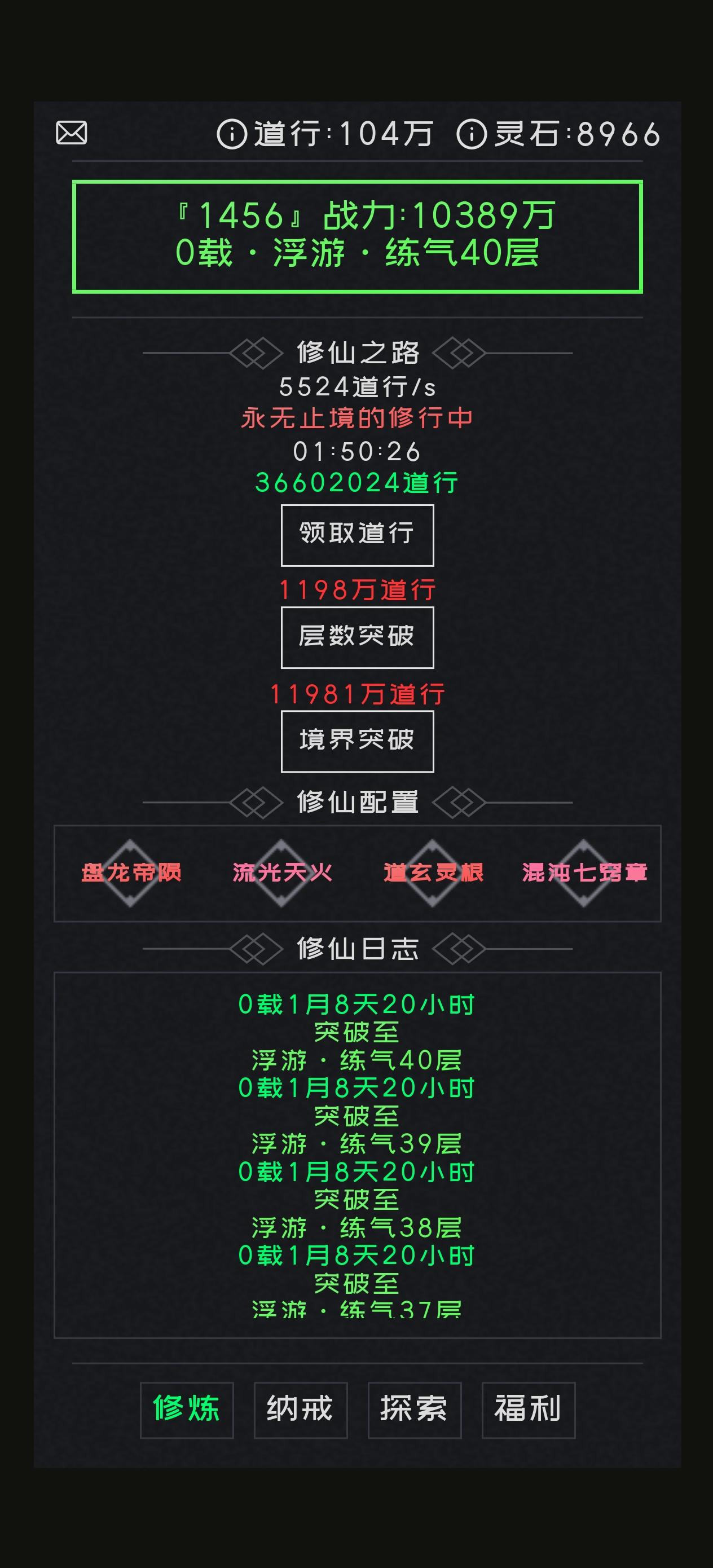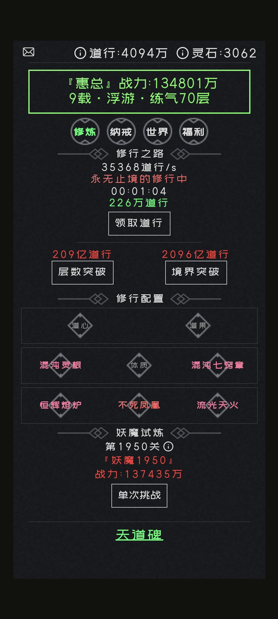 每天挂机,领道行,上班摸鱼可以玩,打发时间,抽奖抽到手发麻,还没有广告,作者大大的良心