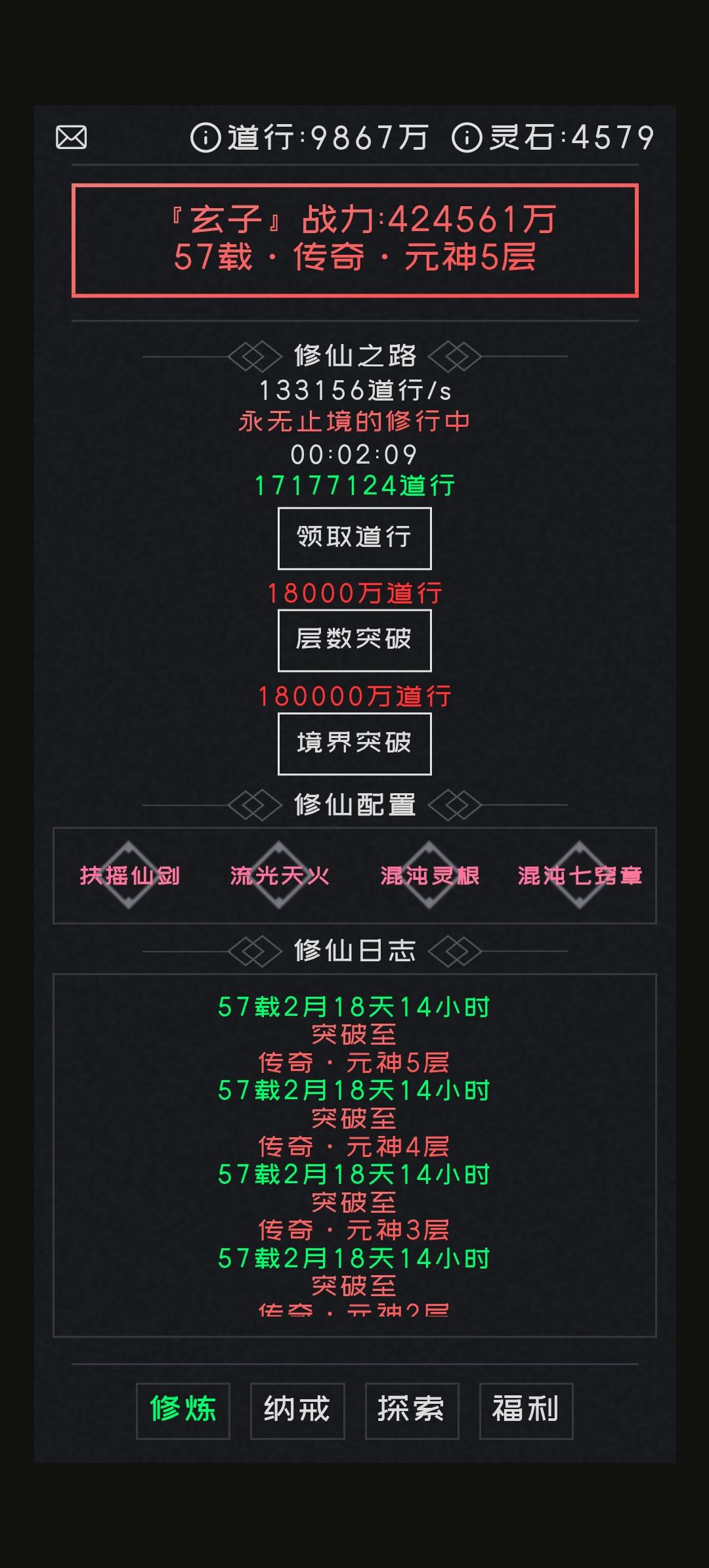 1.先+群使用礼包码,fuli666,fuli888,更多礼包码在群公告里,之后可以寻宝,建议10连。 十连比单次抽奖便宜一千灵石,灵石还是比较珍贵的。2.刷开局。一定一定要记得刷开局,当你有了龙或者无始圣体,金斗,龙象其中之一这就是完美开局,就可以愉快的推关了。3.尽量优先层数突破,打牢基础,然后再境界突破 4.修仙有寿命限制,练气寿200,筑基400,金丹800,元婴1600依次翻倍。5