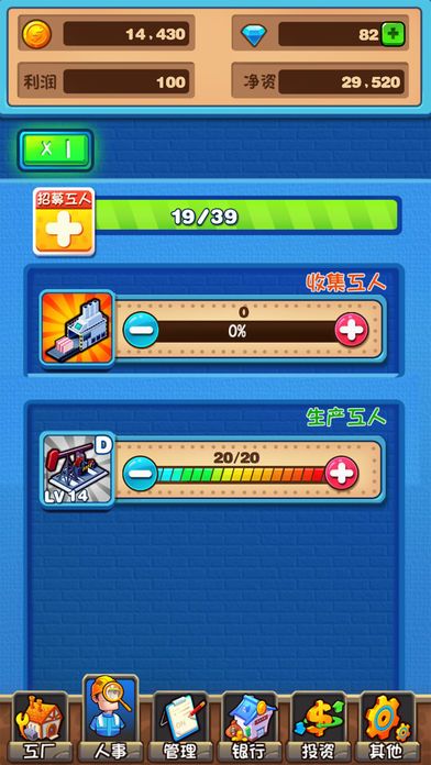 在游戏中玩家将作为模拟经营工厂的老板,打理工厂上下所有事务。合理分配员工的岗位,分配金钱,努力提升和养成工厂的产出和