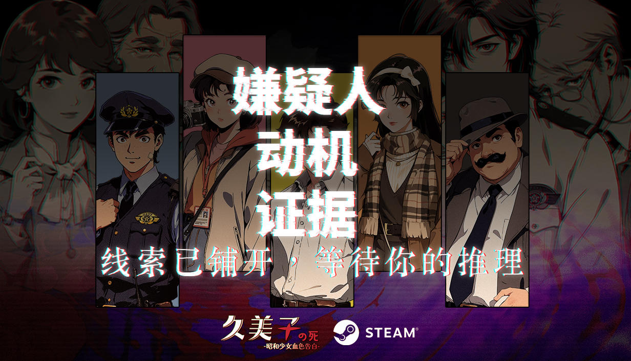 亲爱的玩家们, 我们是《久美子之死:昭和少女血色告白》开发团队,很高兴向大家宣布——免费试玩版现已上线Steam! 我们诚邀您踏入1988年的昭和末景,亲历这场交织个人命运与时代暗流的连环谜案。 🎮 游戏简介 核心体验:化身刑警川端正树,在青梅竹马离奇死亡的成人礼当日,竟成为头号嫌疑人。冲破警局封杀与各方阻挠,侦查线索,探寻与多年前母亲死亡相联系的连环凶案真相。 试玩内容:Demo版包含故事前两章