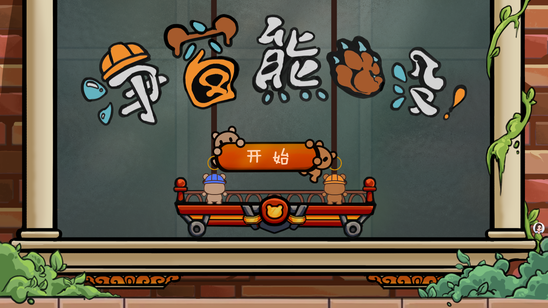 净窗熊出没,言简意赅的名字,直接描述了游戏的两个核心——小熊和擦窗户,游戏的画风很可爱,卡通的风格,标题很巧妙的采用安全帽和熊爪等元素装饰,直接突出了游戏的核心。