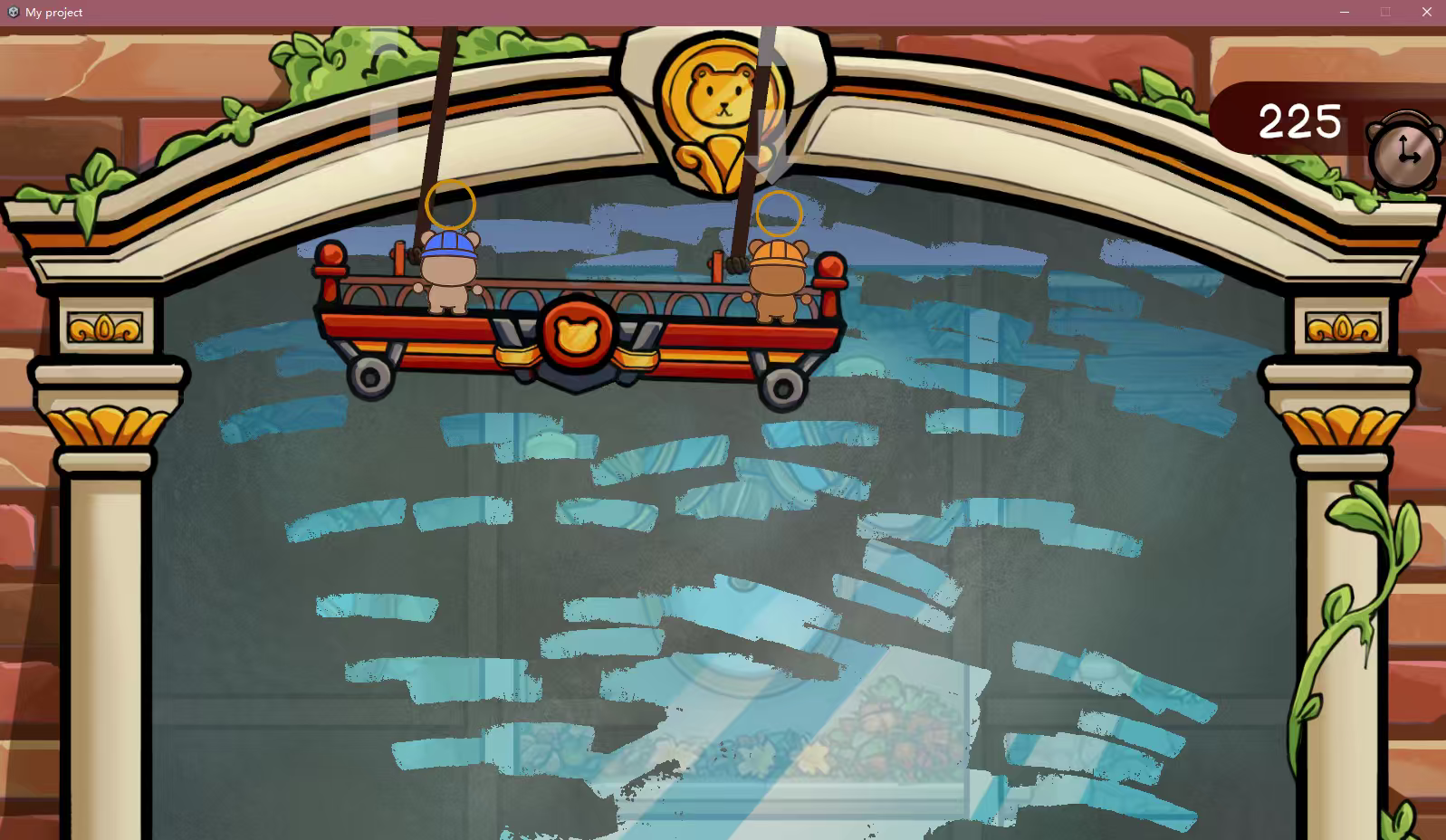 核心玩法:双人合作控制小熊擦大厦窗户,通过起重机上下移动躲避障碍物,再用左右操作完成擦窗或切换开关,玩法逻辑简单但依赖队友默契。