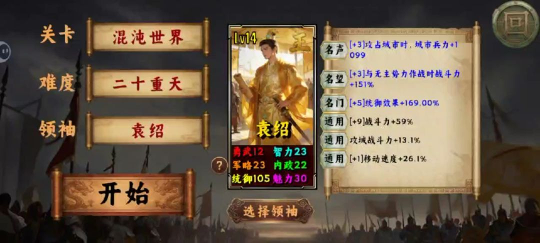 天道试炼,是目前游戏最高难度的副本,所以我们一切准备都是为了打试炼 试炼低层很多英雄都可以打,但是想要打二十重天,目前通关的只有袁绍和曹操 本贴主要讲解袁绍的培养和词条选择 袁绍的玩法就是人海战术,因为专属词条能提高统御效果,所以统御值对袁绍来说最重要,其次是军略,军略加伤害可以有效提高兵多的优势 袁绍的三个专属词条: 名声:攻占城市后加兵力 名望:与无主势力作战时战斗力加 名门:统御效果增加 其