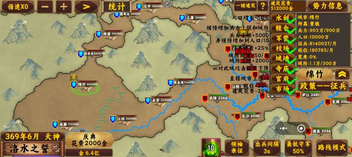 发现洛水之誓没有攻略害得我打了好几遍,给大家避避雷,一般地图我玩的是董卓,非常强,但是这个地图开局就是劣势董卓天赋完全没有时间,我就换成袁绍来玩最高等级等级太低了,就别玩,袁绍的特点就是以战养战非常适合打前期。基础操作我就不讲了,将一些细节,一地图黄河以上的点位,开局能占的全占了,然后自动保留25%的小兵,其他的兵力全部去打(公孙)开局可以先把兵全放出去打,后面就留点后面就调成自动留25的小兵或