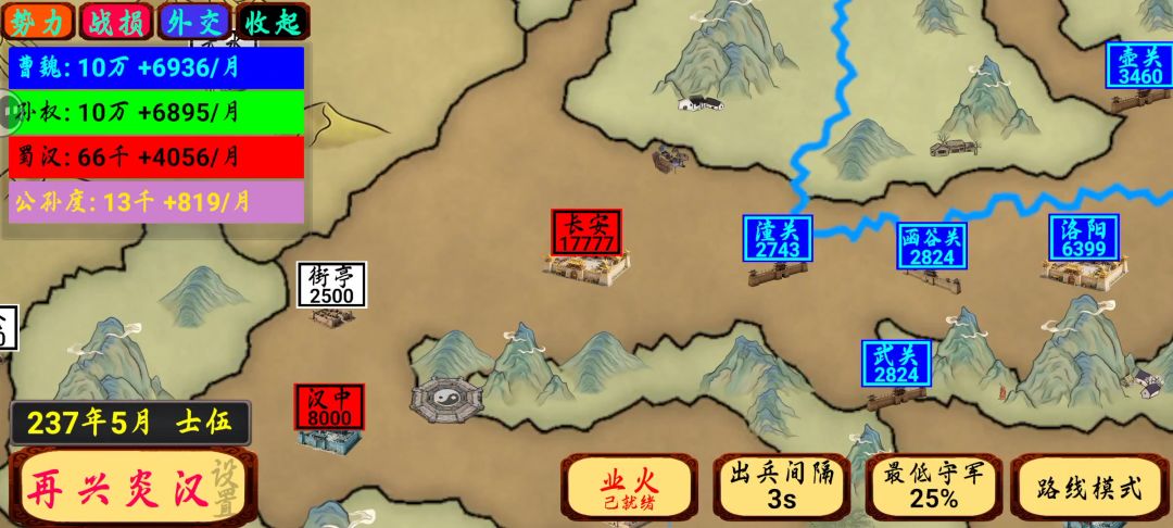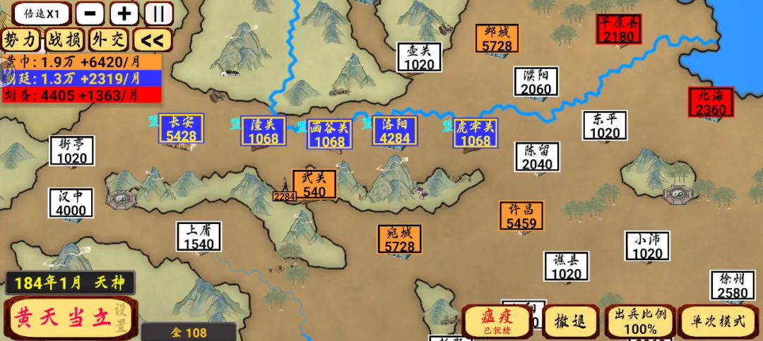 首先,刷个爆黄金快的角色(我选的袁绍) 然后,选个边境且有地势阻挡的城市(我选的云南) 再选一个你认为后期牛逼的势力(我前期选了成都刘,后面换了大皇帝孙权) 开局点市场,开四倍速,开局技能随便,建议增益或削弱(增益保证自己不会被干死,削弱就削弱你选爹旁边的那几个势力) 至于局内技能,首选至多一个城池,守城/战力增加的技能;或者增加你黄金数量的技能 然后,点满市场,水利,筑墙所,寺庙后,疯狂给你的大