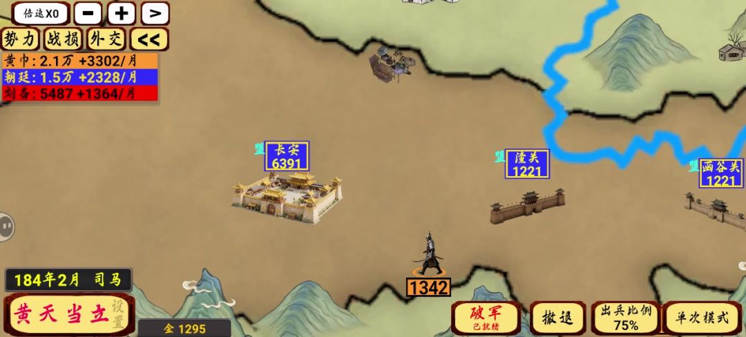 在路线模式下,手指划动经过的所有己方城市会依次连成运兵路线。 在单次模式下,手指划动经过的所有己方城市会各自向最后一个城市出兵。 操作要求: 1 必须从一个己方城市开始按下手指 2 必须在任意城市抬起手指 3 除了抬起手指的城市可以为敌城外,只对手指途径的己方城市生效