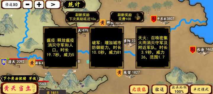 根据论坛和评论的反馈,计划接下来更新:1.平衡游戏难度有不少评论反馈高难度下敌人强度过高,同时也有不少评论显示在大大后期,敌人会因为征兵过多而人口变少缓慢变弱。为解决这两个问题,计划将难度对敌人征兵速度的加成削减为原来的60%,同时其人口增长提升相应数值。在降低敌人压制力的同时,避免敌人随时间变弱。2.为合将设定保底合成后的将领技能词条数量不会少于原料将领最多的词条数。3.修复可能的b