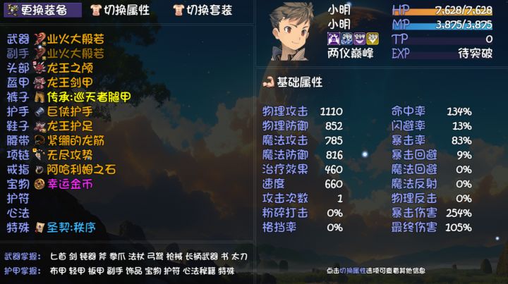 开加速从30版本更新就开始一天12小时肝,中间还经历了神妙改版,终于刷出来了个能让自己满意的套装。以下是不带任何队友时的面板以下是打桩测试算上接二连三的10%再释放,可以大概理解为333w每回合均伤算上再释放可以理解为大约366w回合均伤以下是在bug前提下的测试头换了个长者胡须,大概对伤害的提升在3%左右在三通档20%属性的加成下,小明单人无队友的属性来到了打桩伤害如下算上接二