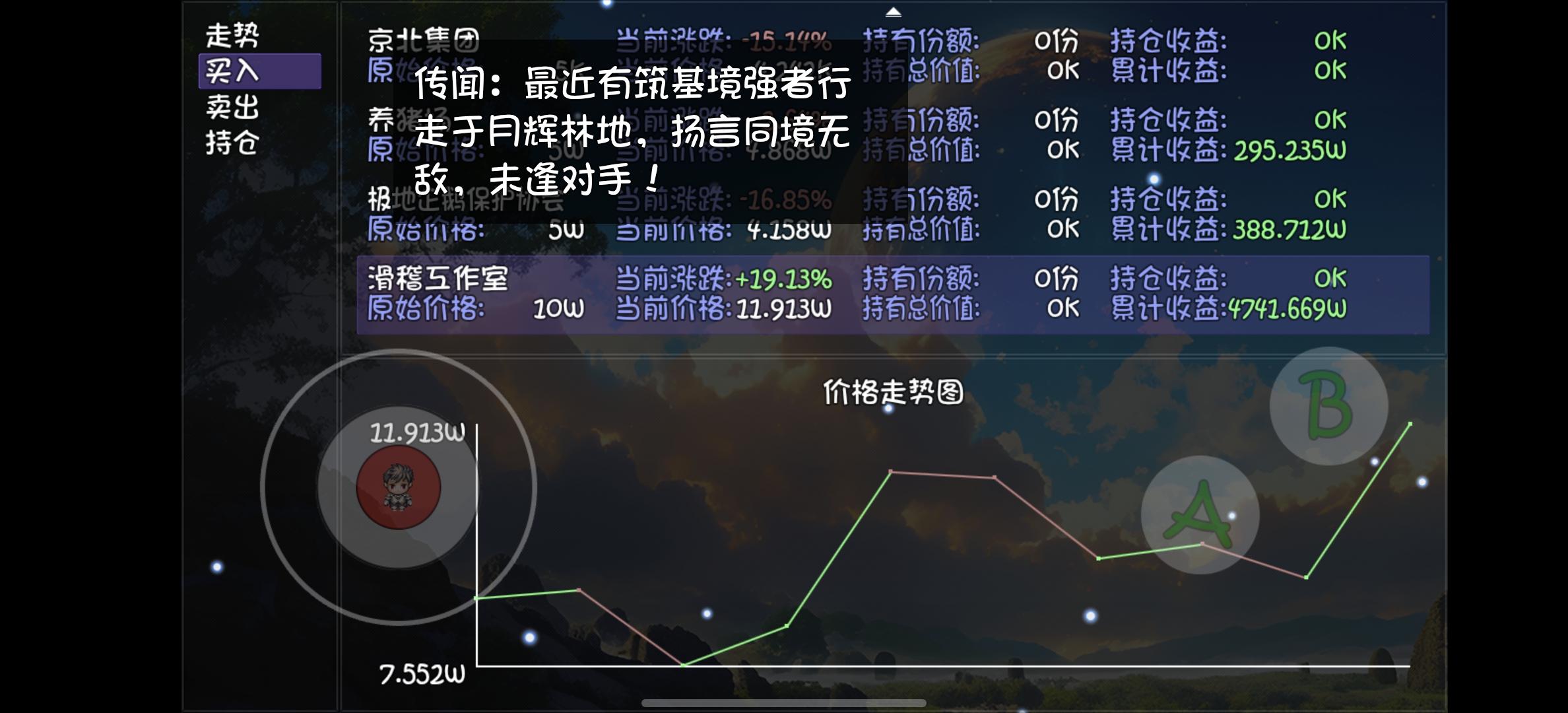 还在因为没钱而烦恼吗?,来到魔法之都股票处,买一个下降最严重的,再去手机设置里面改时间每次半小时就会刷新,等大涨就暴富了,现实也这么爽就好了
