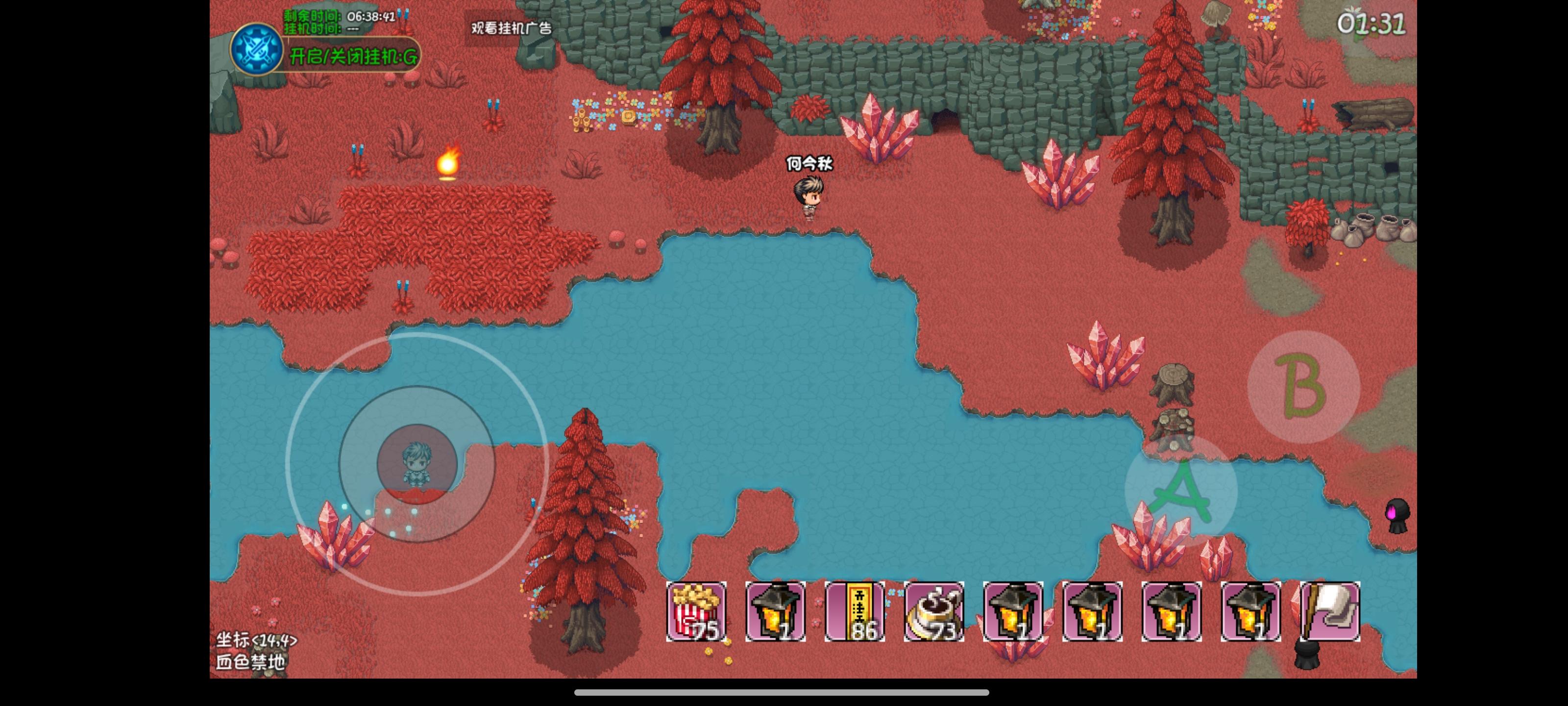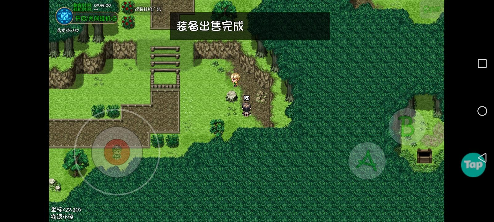 OK啊兄弟们,找到奸商的刷怪点了!就在此处!走到那个树桩子那儿,挂机范围改为1,框框刷哥布林奸商这个地方