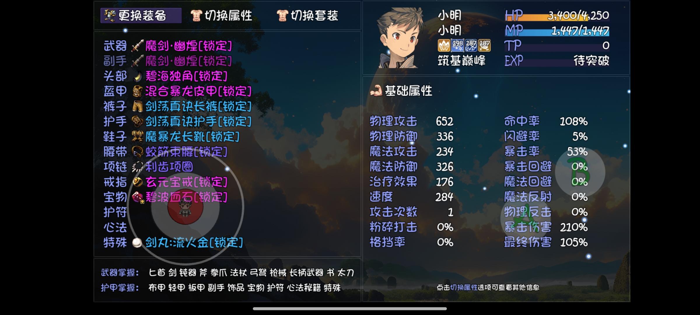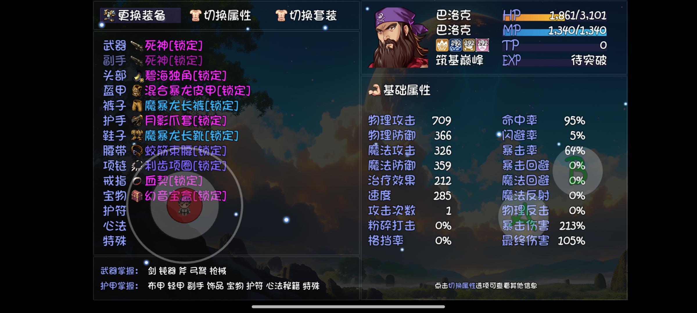 不凹神妙和小属性,心法还在肝五色小明,炎柱猫,碧海潮生修女,一念花开维利亚,奶奶没啥可说的带个复活手套带个佛灯当半个奶,科勒盾妹暂时用着斗气化马和狮吼,没玩天剑也没盾的技能先这么用着,修一想玩法已经没有强势的法系技能空缺了先空学,流云狂战士,战争投掷王烈,太刀里德也没啥特别强势的技能,死神扫射巴洛克,阎王帖栗子头,奥术飞弹瓦莱丽,降龙铁山岳戒指项链除了流云流派必带,我都带着女神套,毕竟刷子游戏