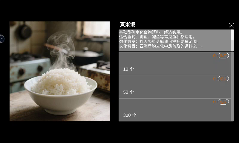 无语了,连最基本的鱼杆都没有,我明明点了买
