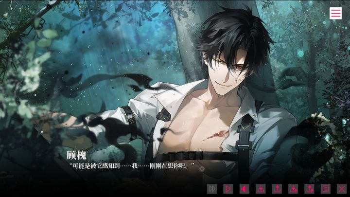 说完好的再说说我个人觉得不好的。首先是美术的问题,考虑到几个人经费有限,背景这种大工程就不多赘述,说说顾槐线的npc和男主之间来回切换对我来说有一点跳脱,不知道是不是因为出这条线是最早的缘故,男主的立绘太好看了,我明白很多时候需要分开主角和npc(也是为了节省经费)但看得出两者不是一个人画的,有种画风突变的既视感。然后就是ui,这个ui有点丑,又土又丑,建议可以换一个稍微好看一点的颜色。