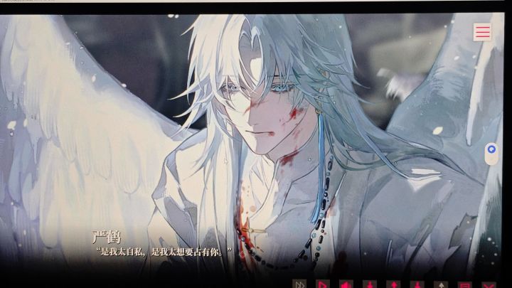 说一下三个男主的立绘,三个人的立绘都很用心。首先是顾总,我还是很吃这一款的,立绘很好看,早期宣传基本都是围绕着顾总宣传的,画的很精美,属于是比较A的类型,和传统西装革履霸总不一样,他是一身劲装,估计这个设计也是考虑到他的能力。严鹤玄学大佬,全身白色,我们人均白毛控,走的不善言辞的高冷路线,异瞳美人,后面有一张CG非常破碎,美貌。最后是年下小狗,这个配音有点捧读不知道是不是我的错觉,声线倒是好听的,这个男主的剧情是我目前玩下来最喜欢的。