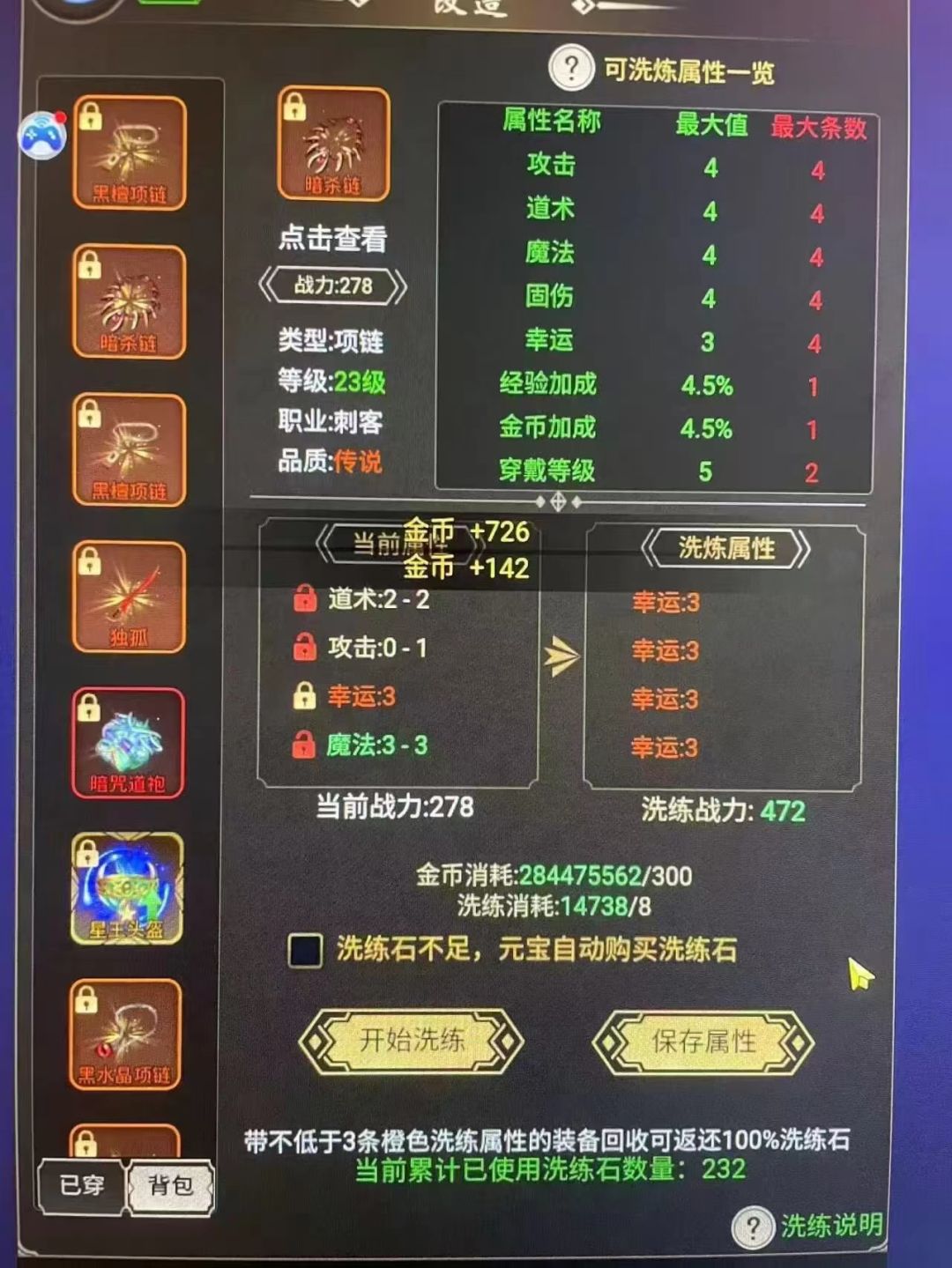 五,星王篇 #魔龙契约 1.先回答一下大家关于红装的疑问,因为我们在前面提过橙装要么全技能,要么洗幸运。那红装应该怎么留? 答:(1)首先60-80级的武器项链全职业必留,因为后期毕业装就是红刀红链12幸运,任何职业升星王后都是通用的60级星王开始。 (2)同理,只要不涉及本职业技能的部位,都可以用其他职业红。比如衣服跟鞋子,毕业装是全技能➕两个高比例血上限。 (3)手镯跟帽子尽可能洗全+两个单