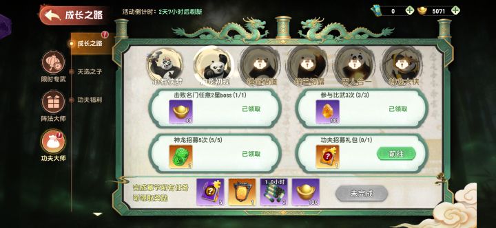 这新活动是啥呀搞得,功夫招募礼包都不知道是啥东西,点前往也点不进去。之前打过这个名门,这个活动也不算,要重新打,最离谱的是不能重复打一个关去刷任务,那我打不过怎么办呢