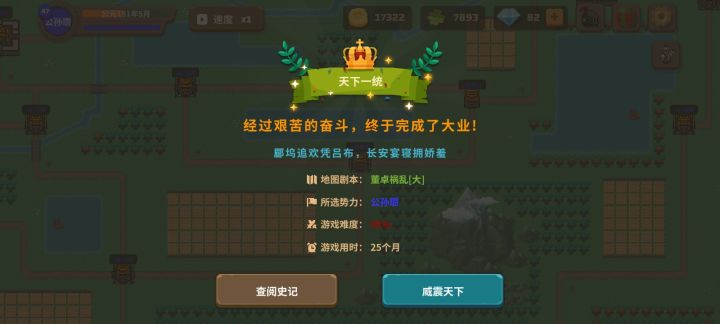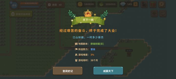 7. 看起来内政大司农,训练,研发里面很多东西,其实刚玩可以完全不理他,只管在大地图抢人抢地游击,没打下来再组织人就行,交战时的微操玩两把就心里有底了,微操起到30%的作用,主要还是看你前期对资源的利用。
