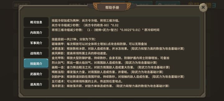 城市的商业、农业、城防,商业农业好理解,但是城防的作用不明白,找不到解释,另外游戏内技能说明看不到,只能退出后在帮助手册看,记不住