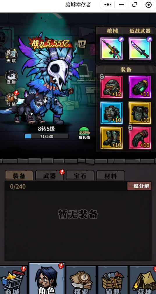 还得是宠物战力涨得猛,做完狗子战力直接从五千飚到了两亿多,现在装备神铸因为出了个狙杀之眼,所以给两件装备神铸点到了两个枪械增伤拉到200+吃加成了,全神铸完估计能10+,不过装备没刷到最好的先不搞神铸了