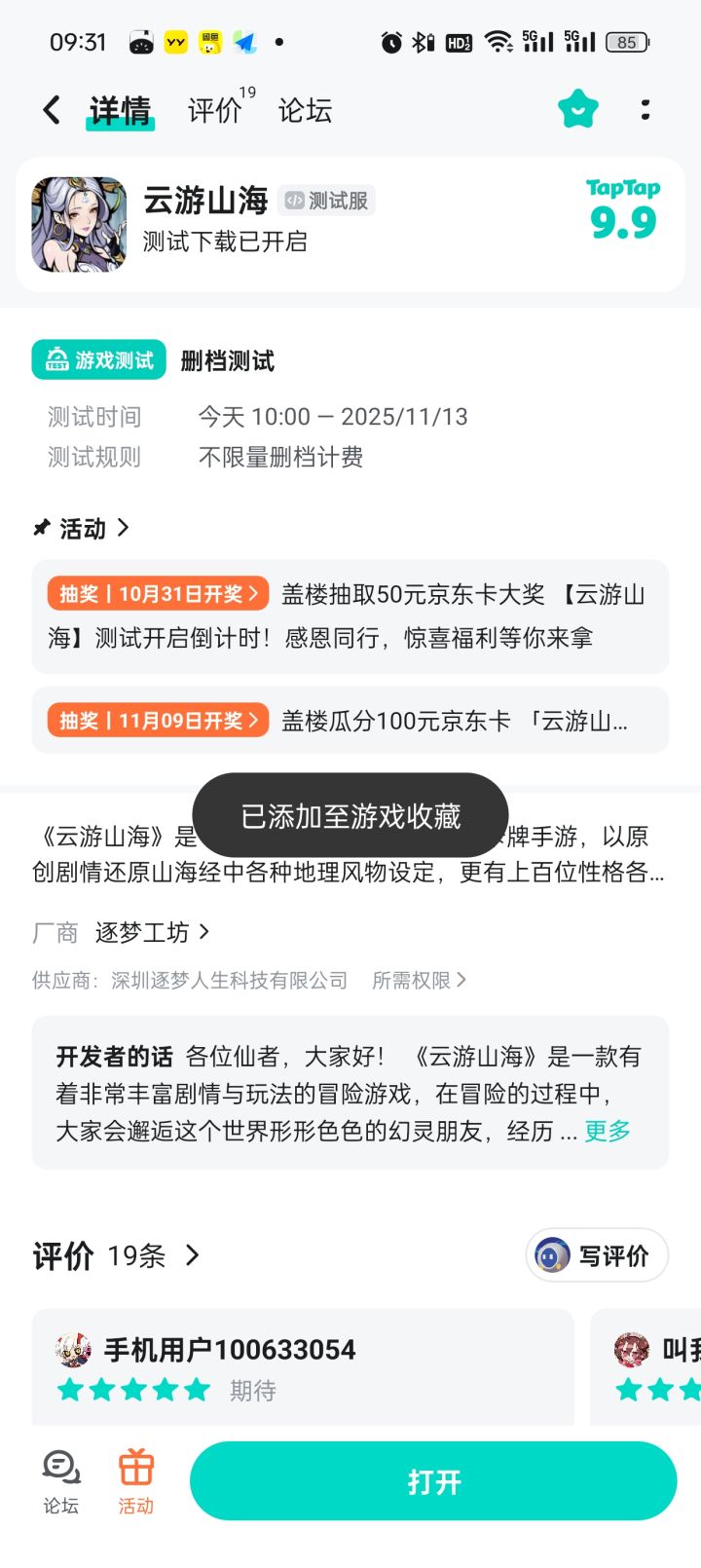 💫 终于等到《云游山海》开测!