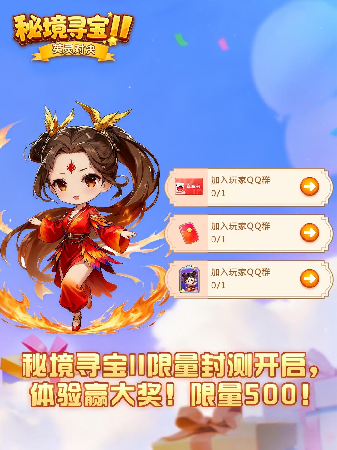 活动时间封测时间:2025年11月10日 - 11月20日问卷填写时间:2025年11月10日-11月20日参与方式1. 下载并参与《秘境寻宝Ⅱ》封闭测试,体验完整内容。2. 于 11月14日 当天填写官方问卷星调查问卷(群公告与评论区将发布链接)。3. 完成问卷后即可参与抽奖,赢取京东卡与器灵限量手办礼包!4. 邀请好友参与并填写问卷,依据邀请人数获得额外排名奖励!5. 前500